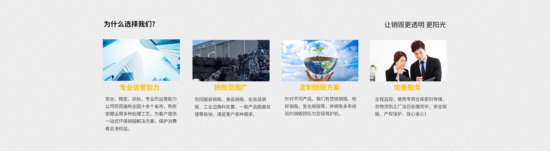 上海嘉安諾環(huán)境科技有限公司主要針對(duì)查獲缺陷產(chǎn)品及不合格產(chǎn)品、公司過(guò)期產(chǎn)品、假冒偽劣產(chǎn)品、臨期產(chǎn)品、變質(zhì)產(chǎn)品、庫(kù)存產(chǎn)品、積壓商品、機(jī)密文件的銷(xiāo)毀處理,開(kāi)具銷(xiāo)毀證明,以便商業(yè)稅務(wù)核算,海關(guān)單證返還等等。主要銷(xiāo)毀產(chǎn)品有:服裝服飾銷(xiāo)毀 食品類(lèi)銷(xiāo)毀,化妝品類(lèi)銷(xiāo)毀 電子產(chǎn)品銷(xiāo)毀 電子零部件銷(xiāo)毀,庫(kù)存產(chǎn)品銷(xiāo)毀,臨期商品銷(xiāo)毀,過(guò)期飲料銷(xiāo)毀,辦公用品銷(xiāo)毀,保密紙銷(xiāo)毀,檔案銷(xiāo)毀,文件銷(xiāo)毀,資料銷(xiāo)毀,賬單銷(xiāo)毀,文稿銷(xiāo)毀,圖紙銷(xiāo)毀,信函銷(xiāo)毀,所有紙制品銷(xiāo)毀進(jìn)行粉碎貨熔漿銷(xiāo)毀處理,保持信息無(wú)法恢復(fù),各單位企業(yè)工業(yè)垃圾處理。